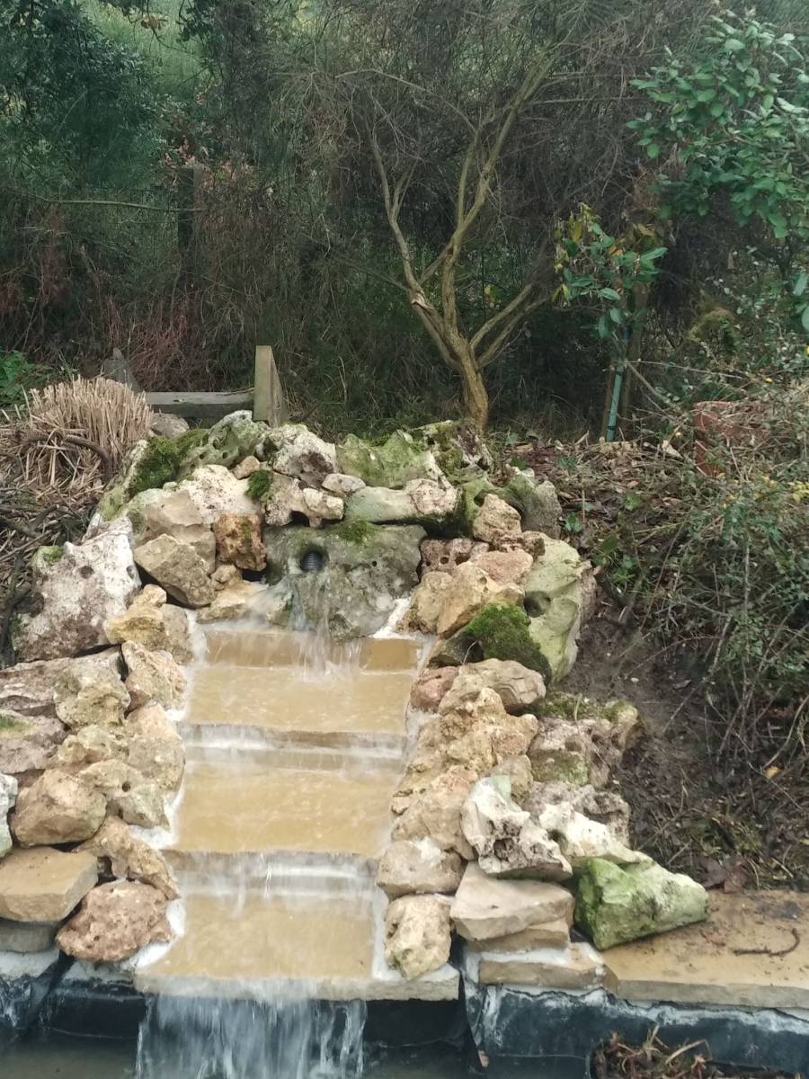 Aménagement des abords et de l'animation d'eau Le contour en pierres naturelles du bassin sera fait avec des dalles non gélives, scellées et jointées pour camoufler la membrane et donner un aspect naturel au bassin La cascade sera également refaite avec des pierres scellées sur une membrane étanche afin de garantir aucune fuite d'eau