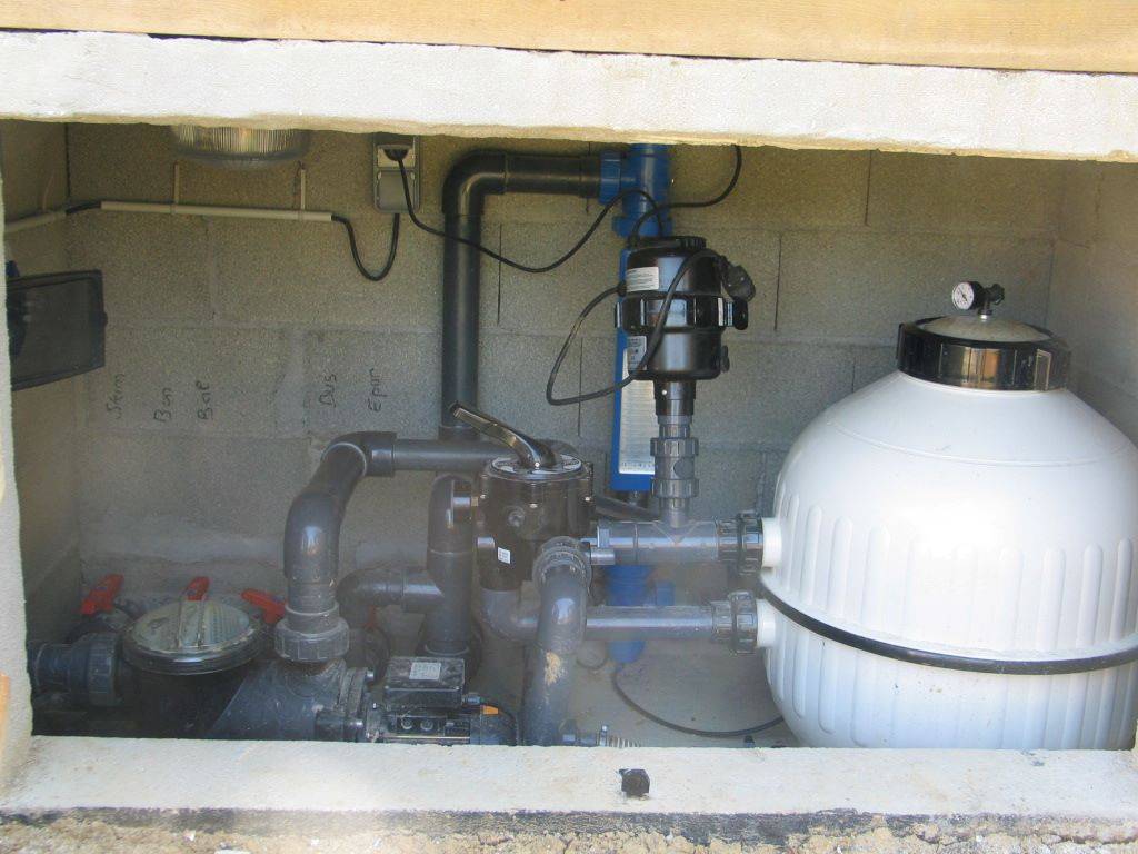 Électrolyse à très faible salinité : En complément du traitement UV, le système utilise des électrodes pour générer un désinfectant résiduel à partir d'une très faible concentration de sel dans l'eau (environ 0,5 g/litre - dix fois inferieur à celui d'un traitement classique donc dix fois moins de chlore). Cela permet d'assurer une désinfection continue de l'eau dans tout le bassin.