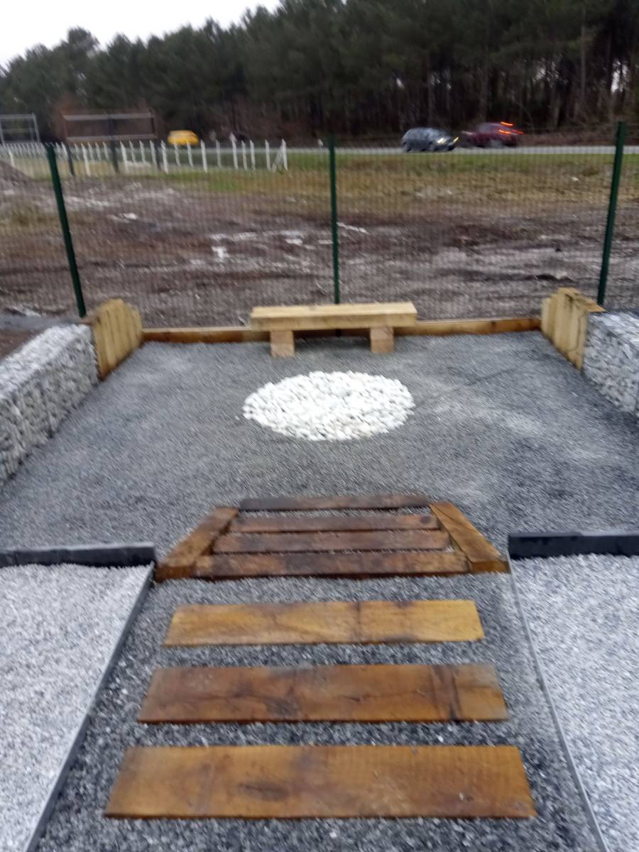 La mise en place de traverses chêne a été réalisée dans une aire d'exposition à Sanguinet dans les Landes