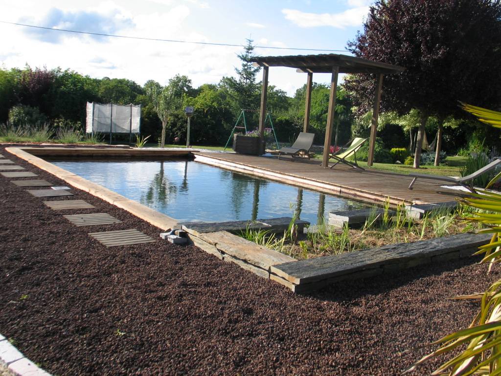 Contrairement aux systèmes classiques au chlore ou au sel, la filtration repose sur l’action combinée des plantes aquatiques, des substrats filtrants et des micro-organismes épurateurs. L’eau circule à travers un bassin de lagunage végétalisé, assurant sa purification en continu, sans traitement chimique ni odeur.
